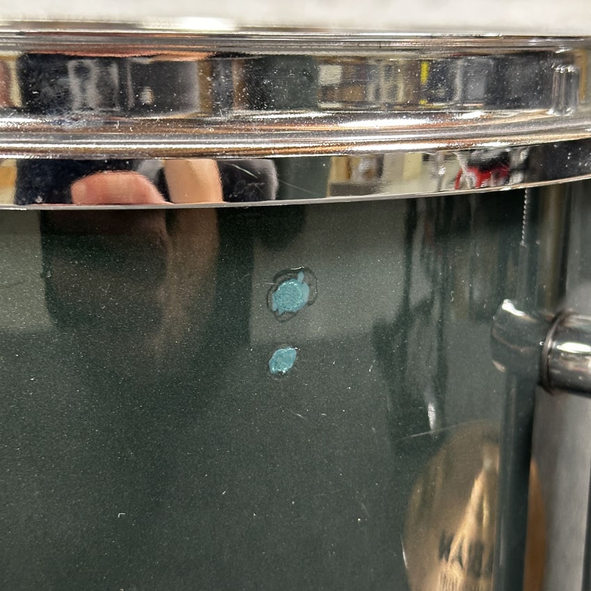 Good condition. It looks like the tom holder was replaced. There is an extra hole under the mounting bracket.