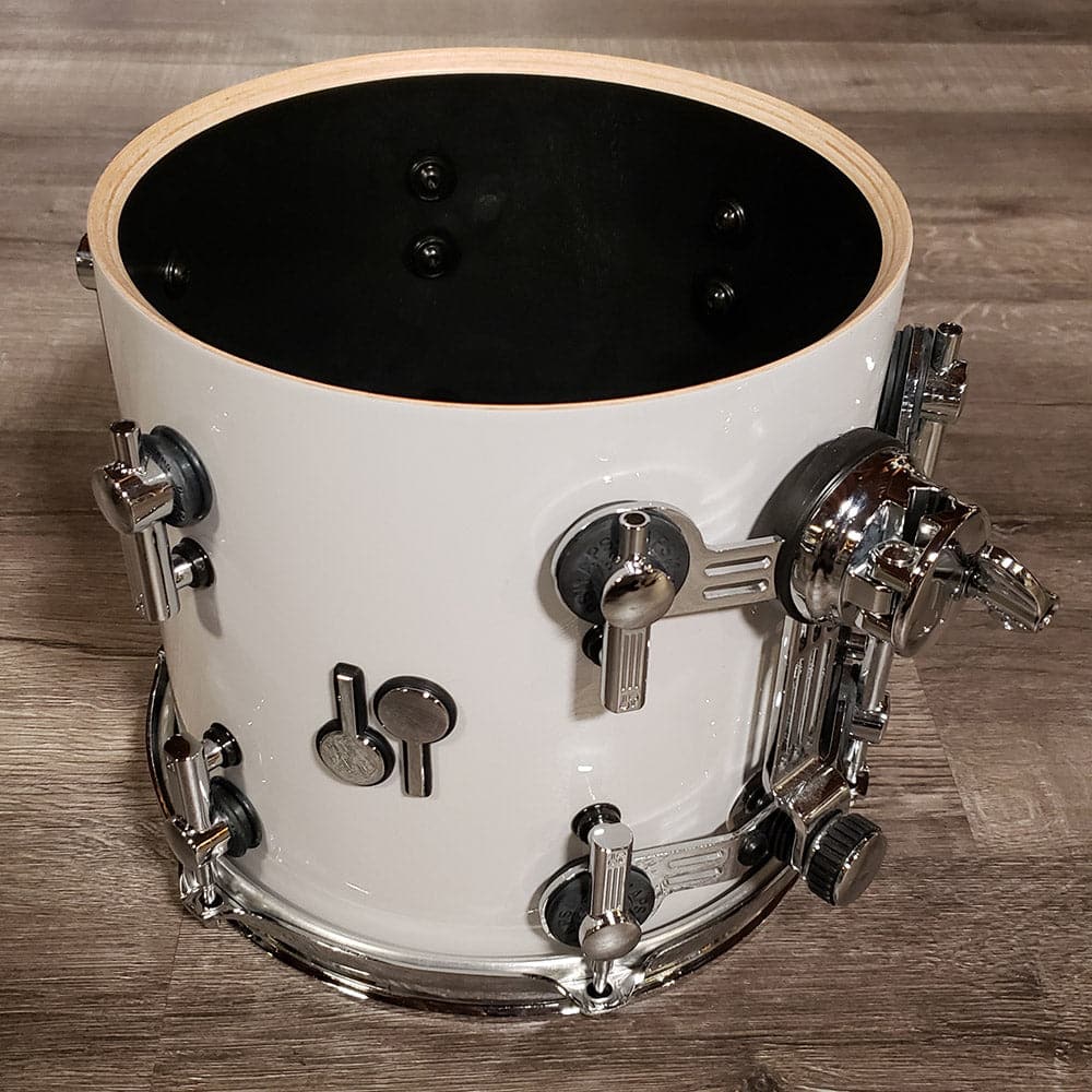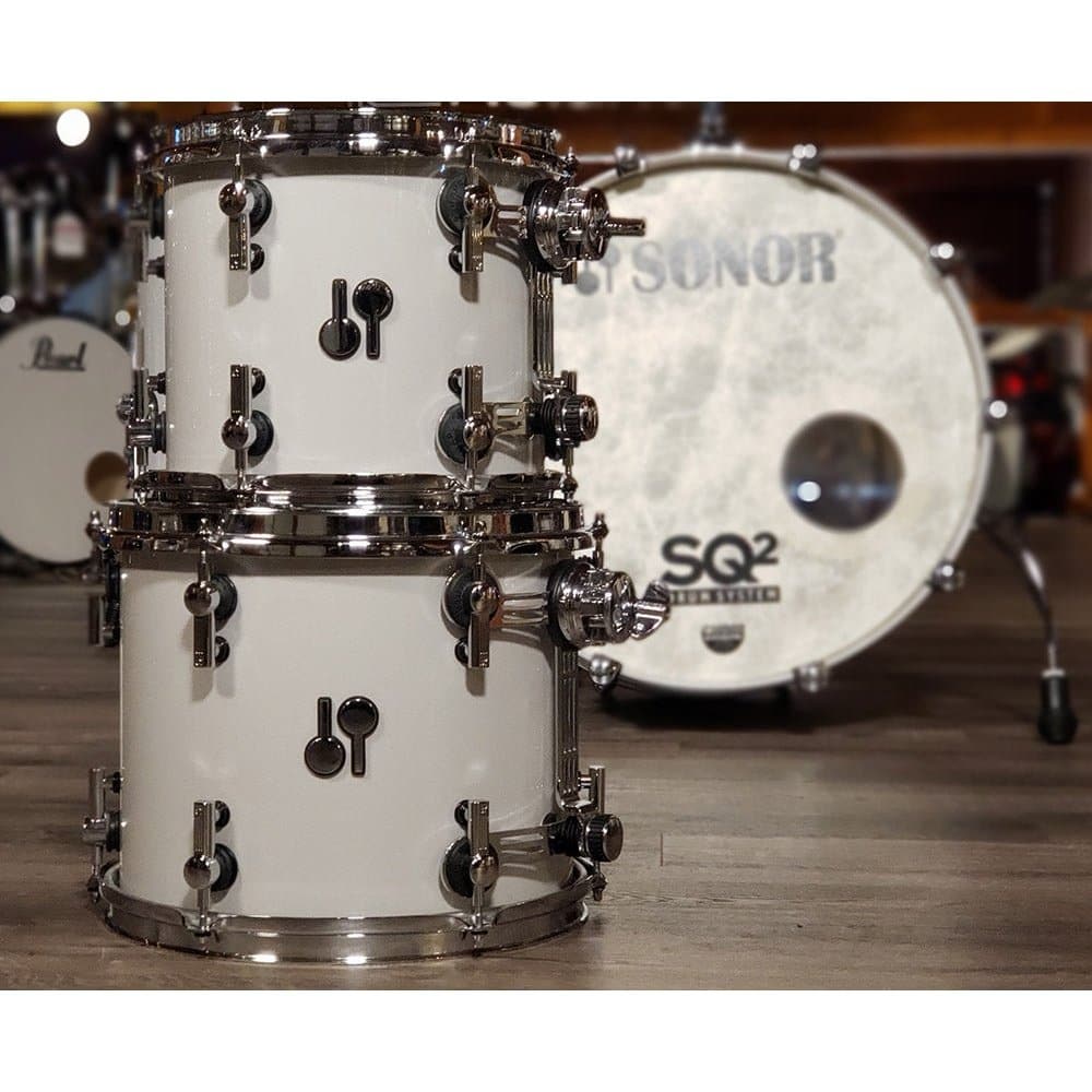 These are in MINT shape, never gigged! Featuring HEAVY maple shells and the High Gloss RAL Tele Gray Lacquer finish with Black interiors, this used Sonor SQ2 drum set is a BEAST!