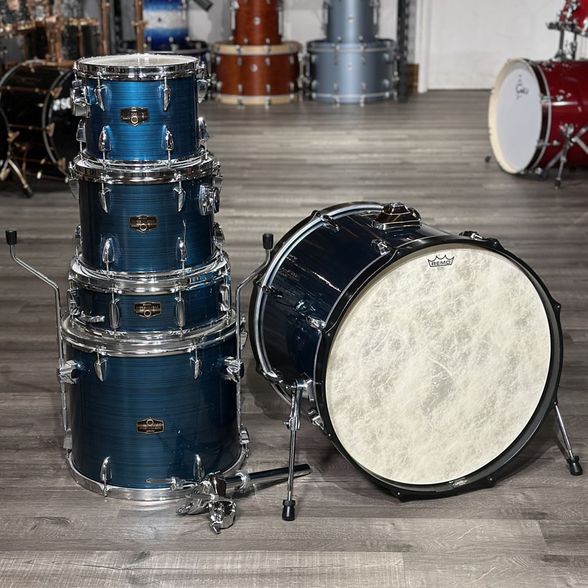 Good condition. All parts present and functional. Floor tom legs and Tama double tom holder included.