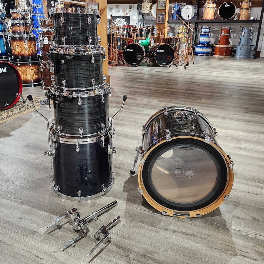 Good condition. Birch shells. Made in Japan! 10x8, 12x9, 14x11, 16x16, 20x18. The wrap is bubbling on the bass drum. The 16" floor tom is a Tama Starclassic Performer MIJ but was re-wrapped to match this kit. The wrap is very close but not a perfect match. Comes with Tama Double tom holder and single tom holder for the suspended floor tom.