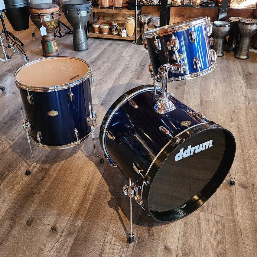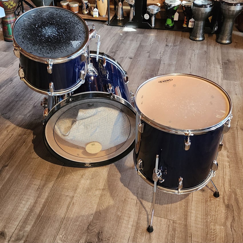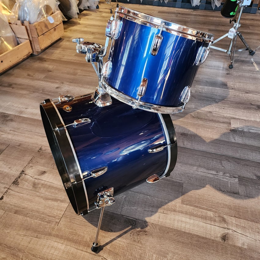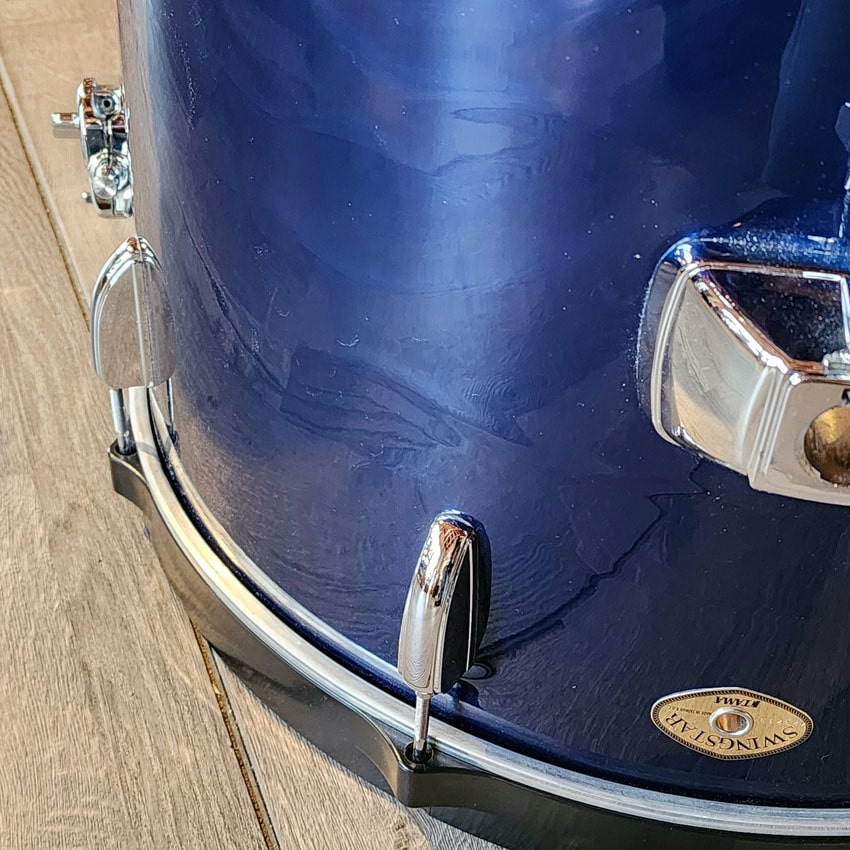 Fair condition. The wrap on the bass drum is bubbling. Comes with Tama double tom holder and floor tom legs. Sizes are 13x10, 16x16, and 22x18.