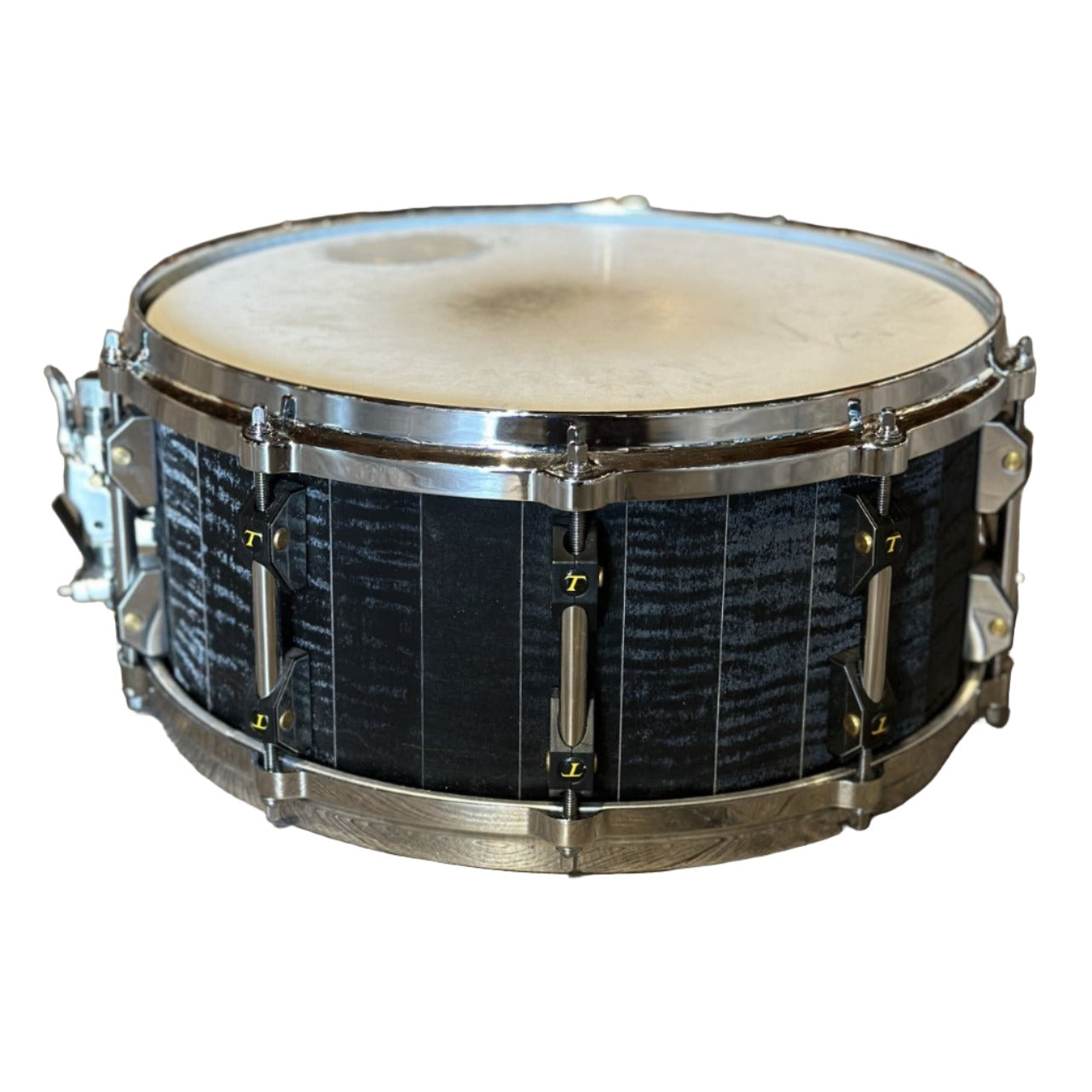 Good Condiion. The shell and hardware are clean and all hardware is fully functional. Missing one of the rubber tamburo logos