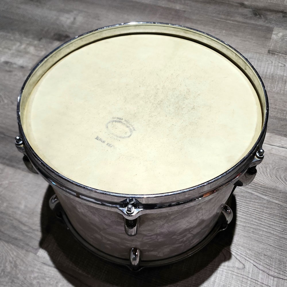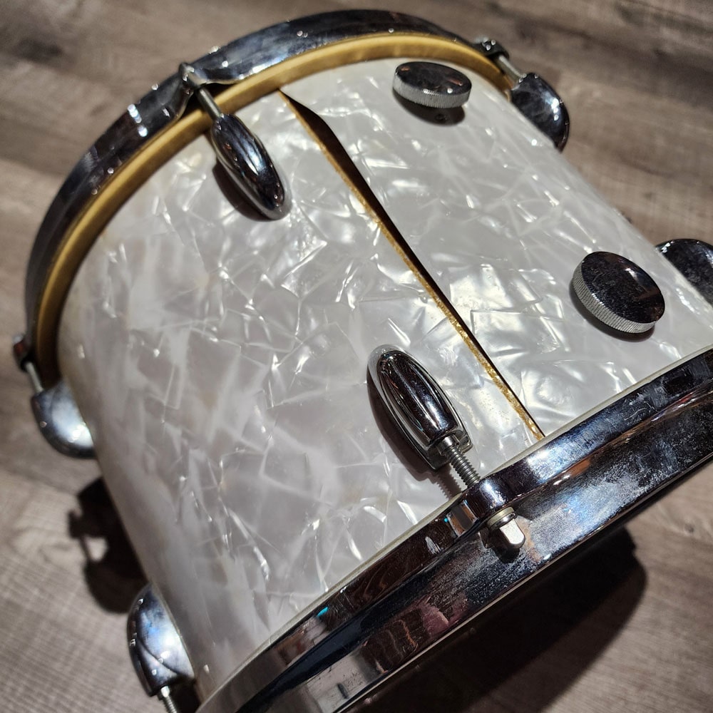 Fair condition. Wrap is lifting on both drums. One bass drum leg is missing. All parts are original including batter side heads. sizes: 13x9 and 22x14.
