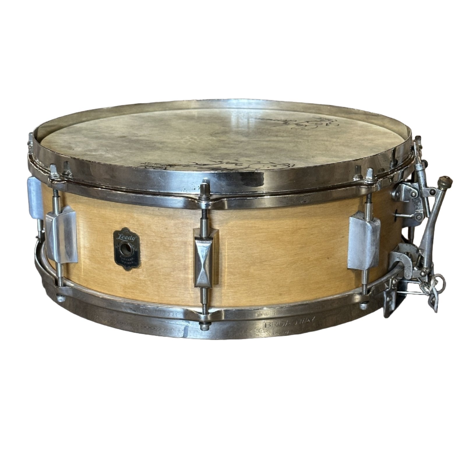 Excellent condition. An early 1930s Leedy 14x4.5 snare drum signed by Bernard Purdie and Clayton Cameron (signature on drum head). 1-ply steam bent shell. Parallel throw-off is fully functional. Bearing edges are in great condition, no splitting. Hardware shows no sign of rust. Original spare tension rods included.
