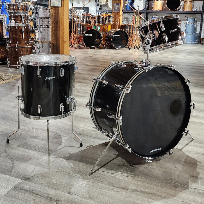 Used Vintage Rogers 3pc Drum Set Black Wrap - Good