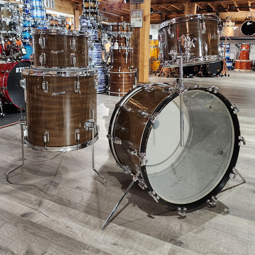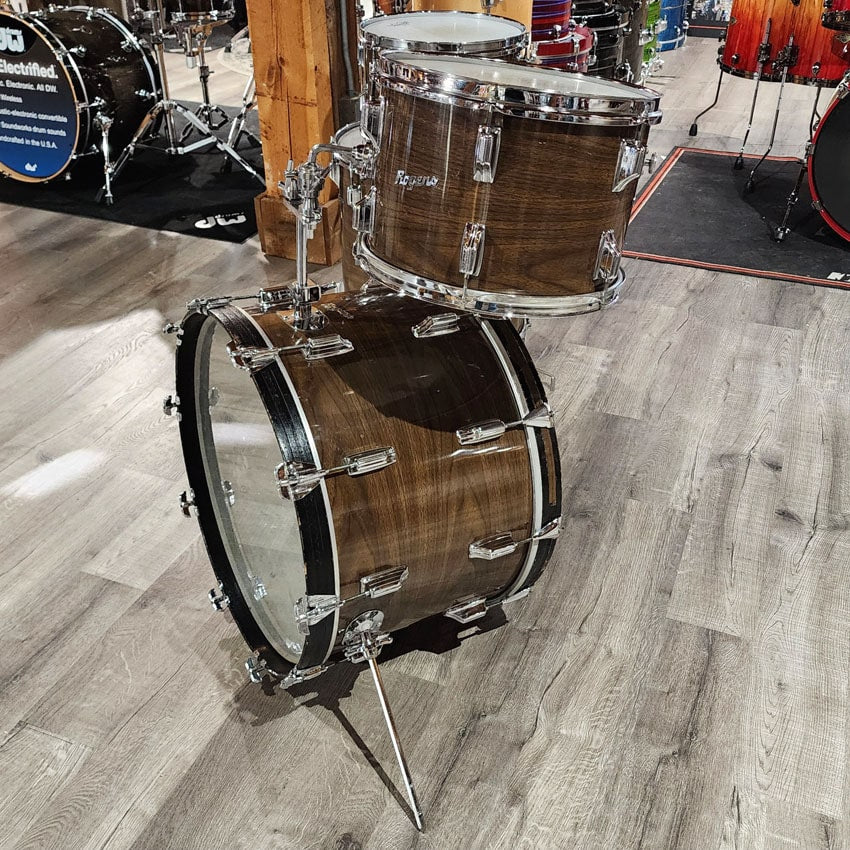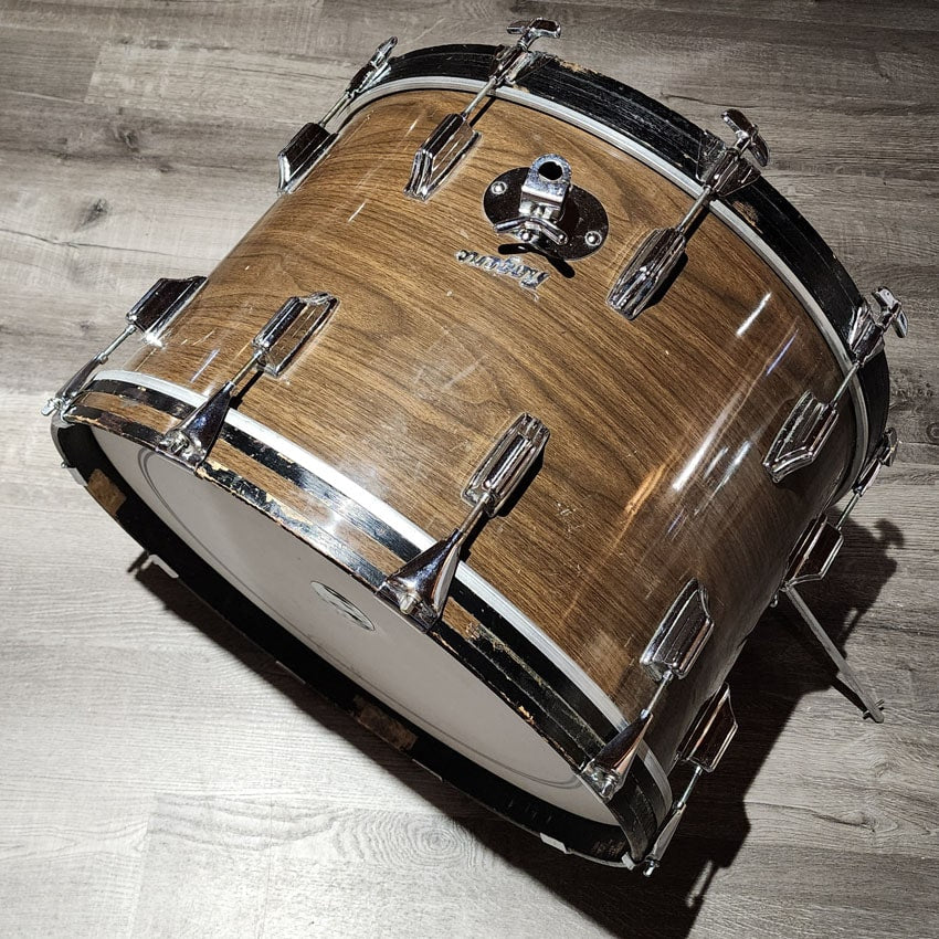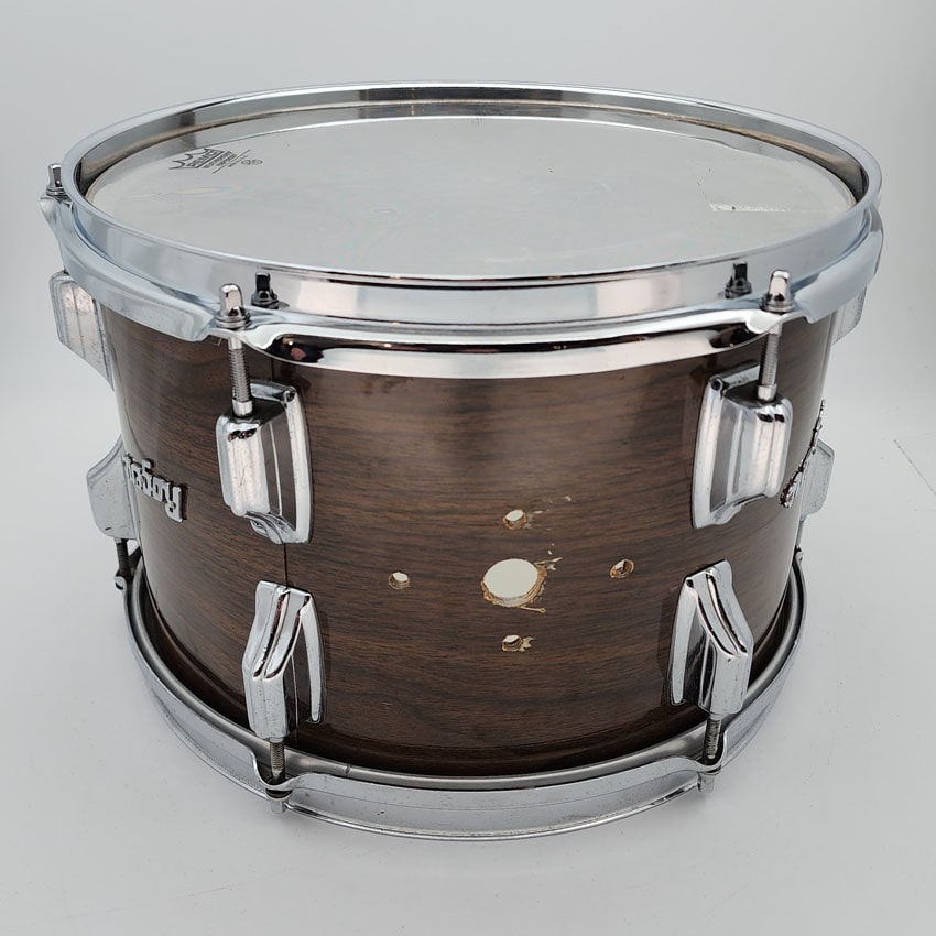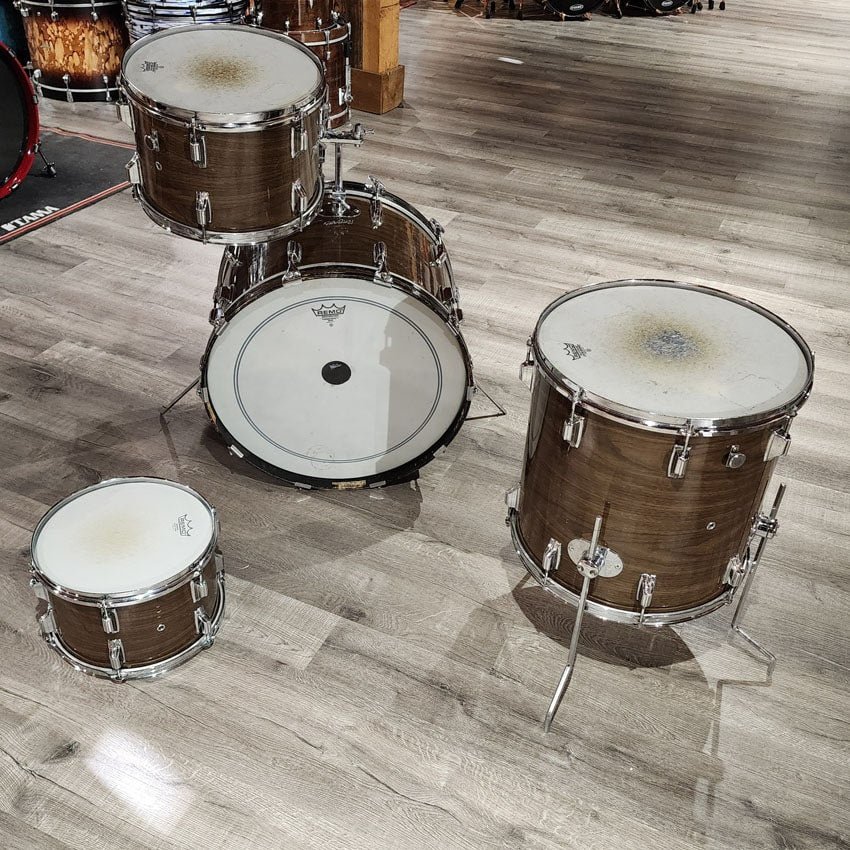 Fair condition. 12x8, 13x9, 16x16, 22x14. This is not a collector's piece but would be a great player's kit! Bumped and bruised. The bass drum hoops are rough cosmetically but are solid structurally. The inlays on the BD hoops is missing in places. The BD claws have been replaced in some places. No mounting bracket or internal muffler on the 12x8. Comes with a double tom holder with only one tom arm. Original floor tom legs included. Fullerton, CA.