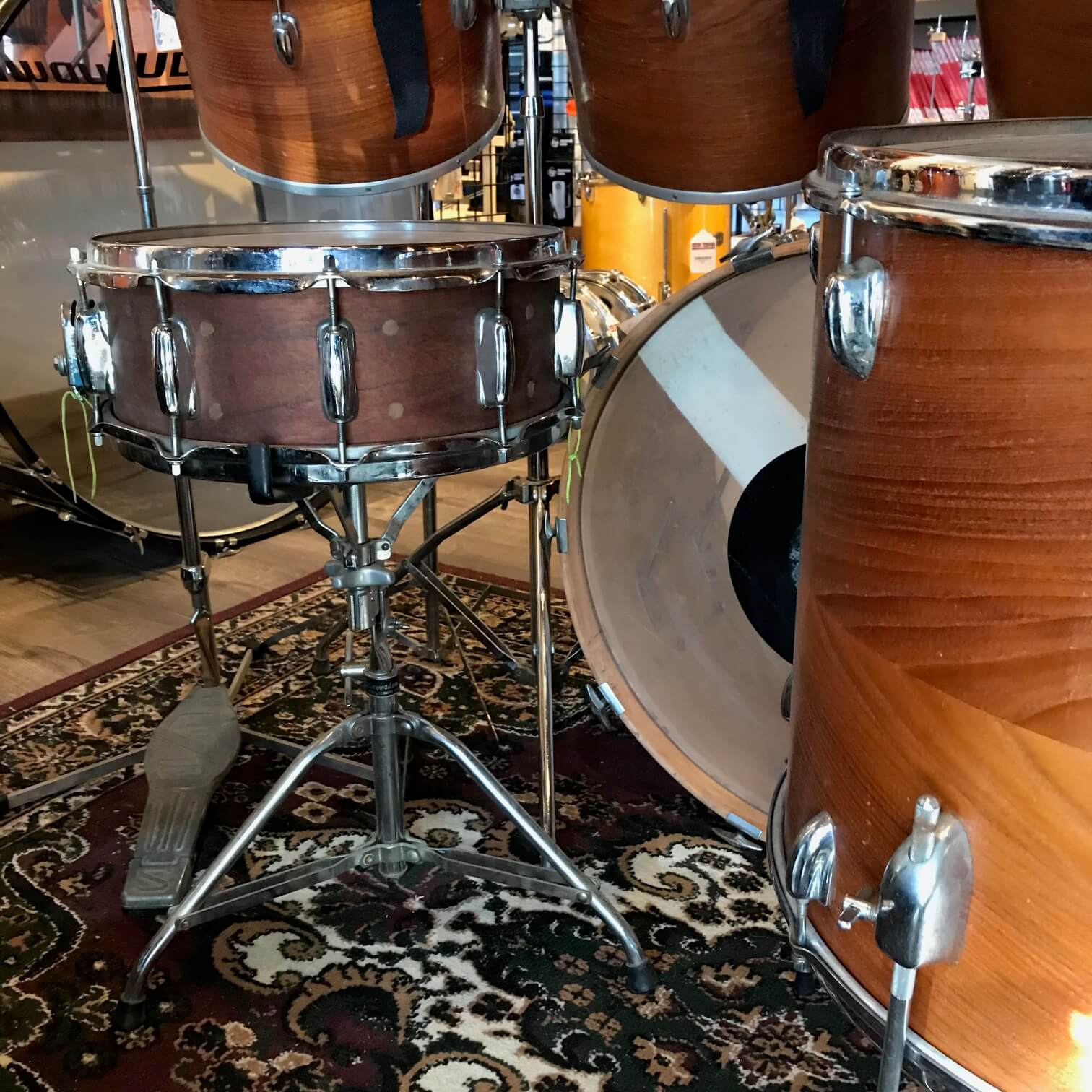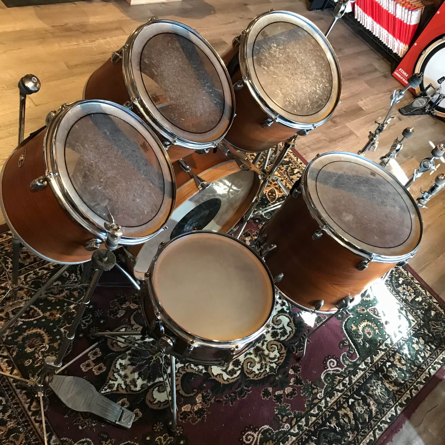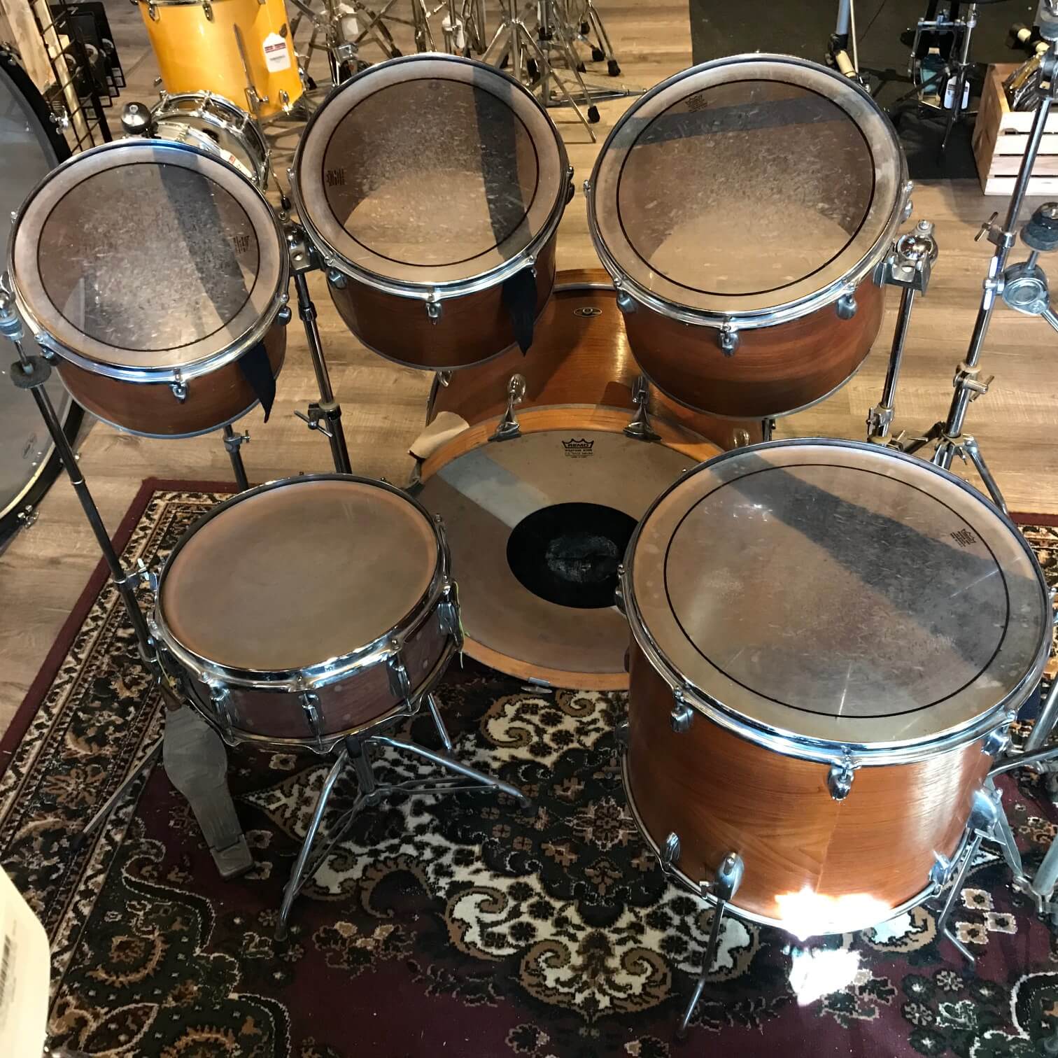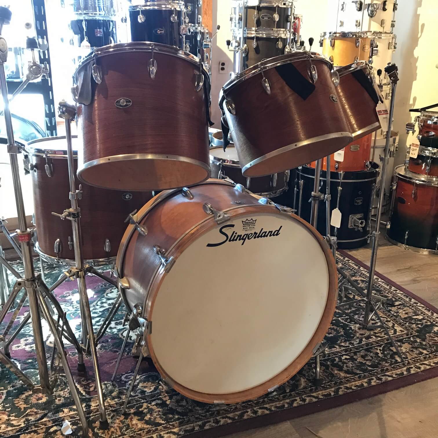 Very Good Condition! 14x5 snare drum; 13x9, 14x10, and 15x12 single-headed rack toms; 18x16 floor tom; 24x14 kick drum. (x2) Slingerland Double Tom Stands are included. w