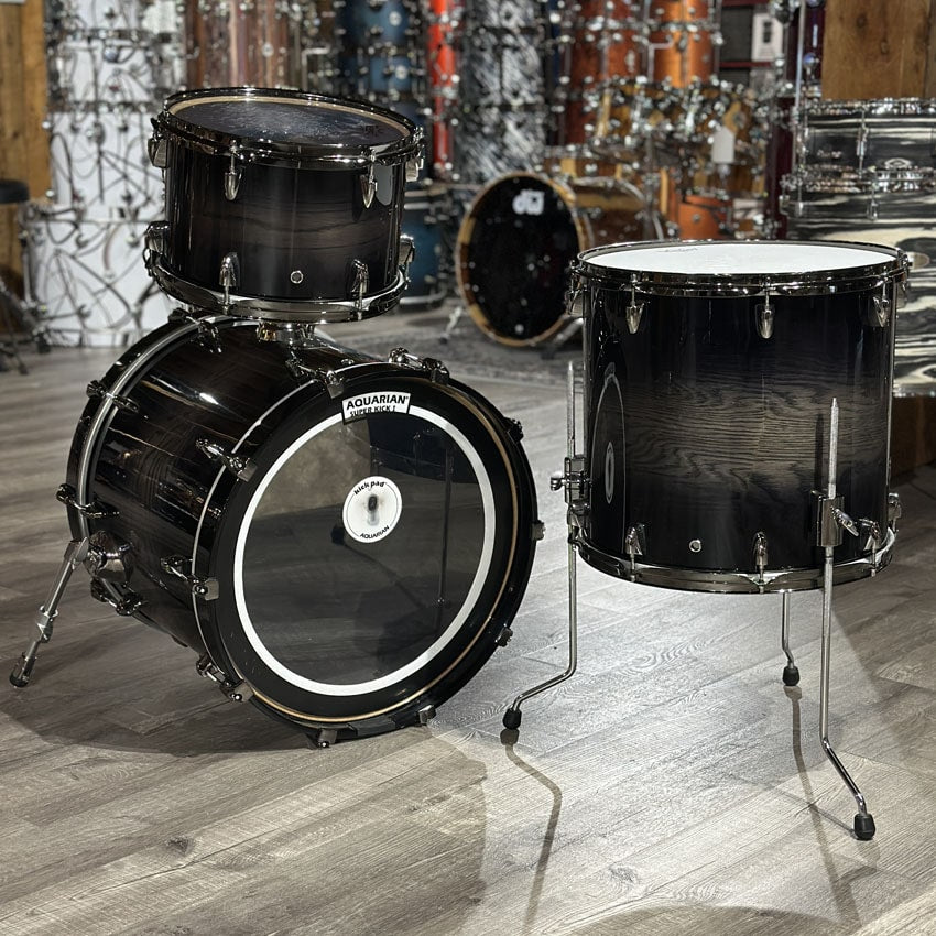 Very Good Condition. Mounting hardware included. All parts present and functional. Shells, hardware and finish are very clean. Sizes for this kit are 12x8, 16x15, 20x16.