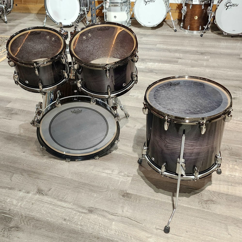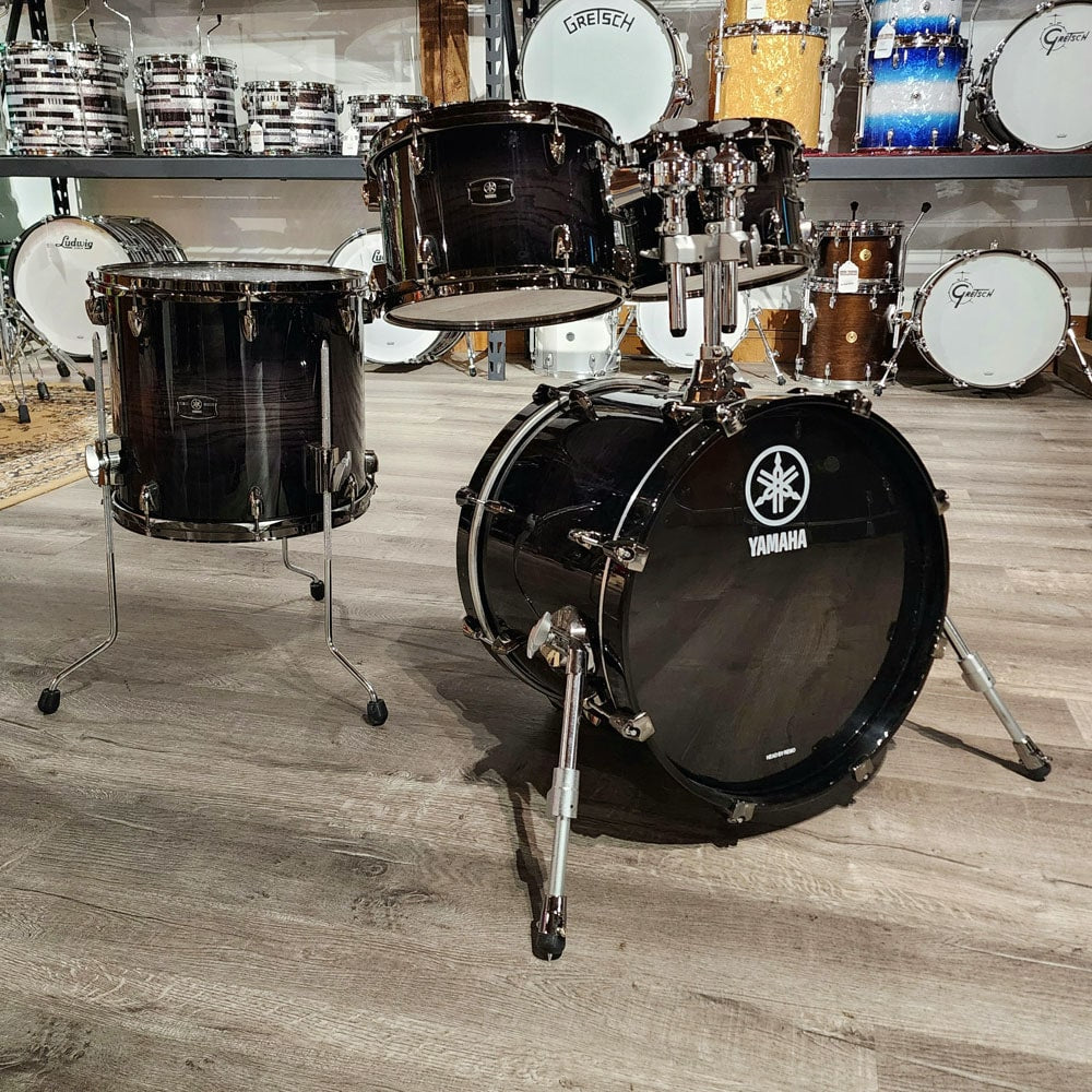 Used Yamaha Live Custom Oak 4pc Drum Set Black Shadow Sunburst