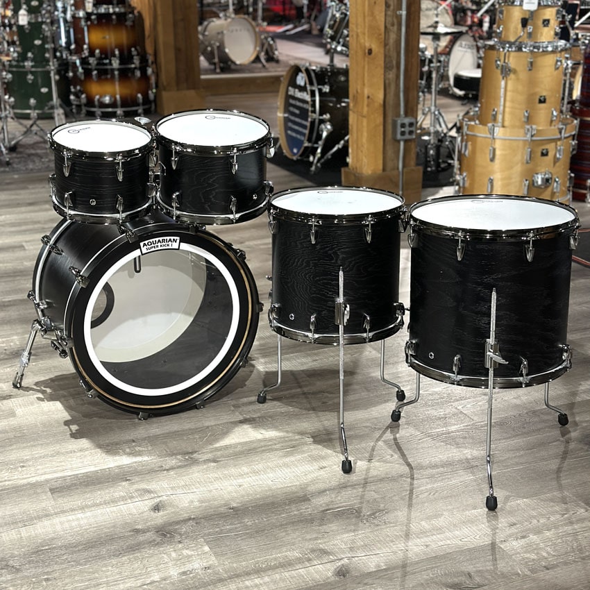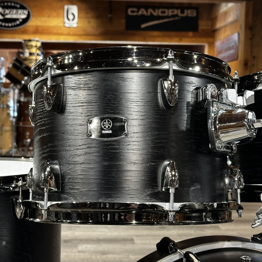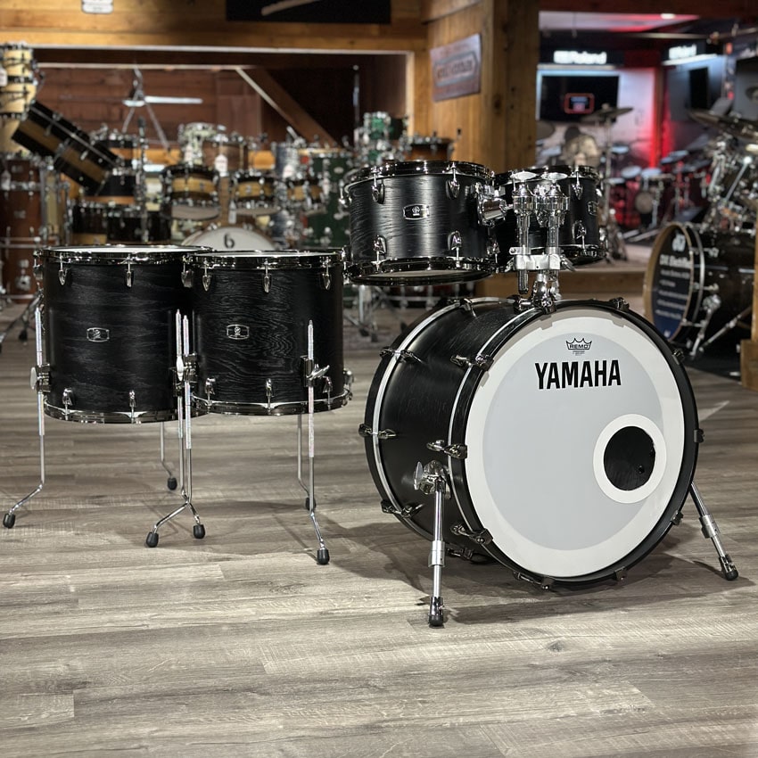 Very Good Condition. All parts present and functional. Shell and hardware are clean. Some adhesive left on the batter side bass drum hoop where a protective patch was placed and removed. Sizes for this kit are 10x7/12x8/14x13/16x15/22x14.
