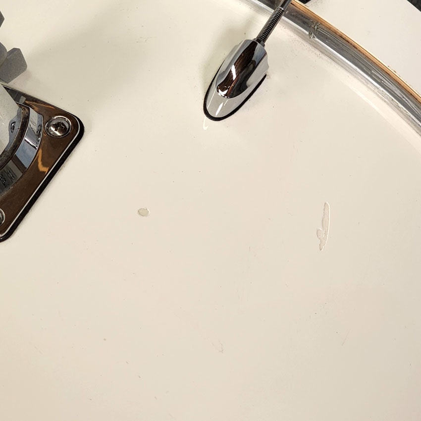 Good Condition. All parts present and functional. Stock heads have been replaced with EC2 tom heads and an emad bass drum. All mounting hardware is included. Shell and hardware are clean. Hoop rash on the batter side bass drum hoop but not noticeable damage. Sizes for this kit are 20x16, 10x7, 12x8, 14x13, 14x5.5 Snare Drum.