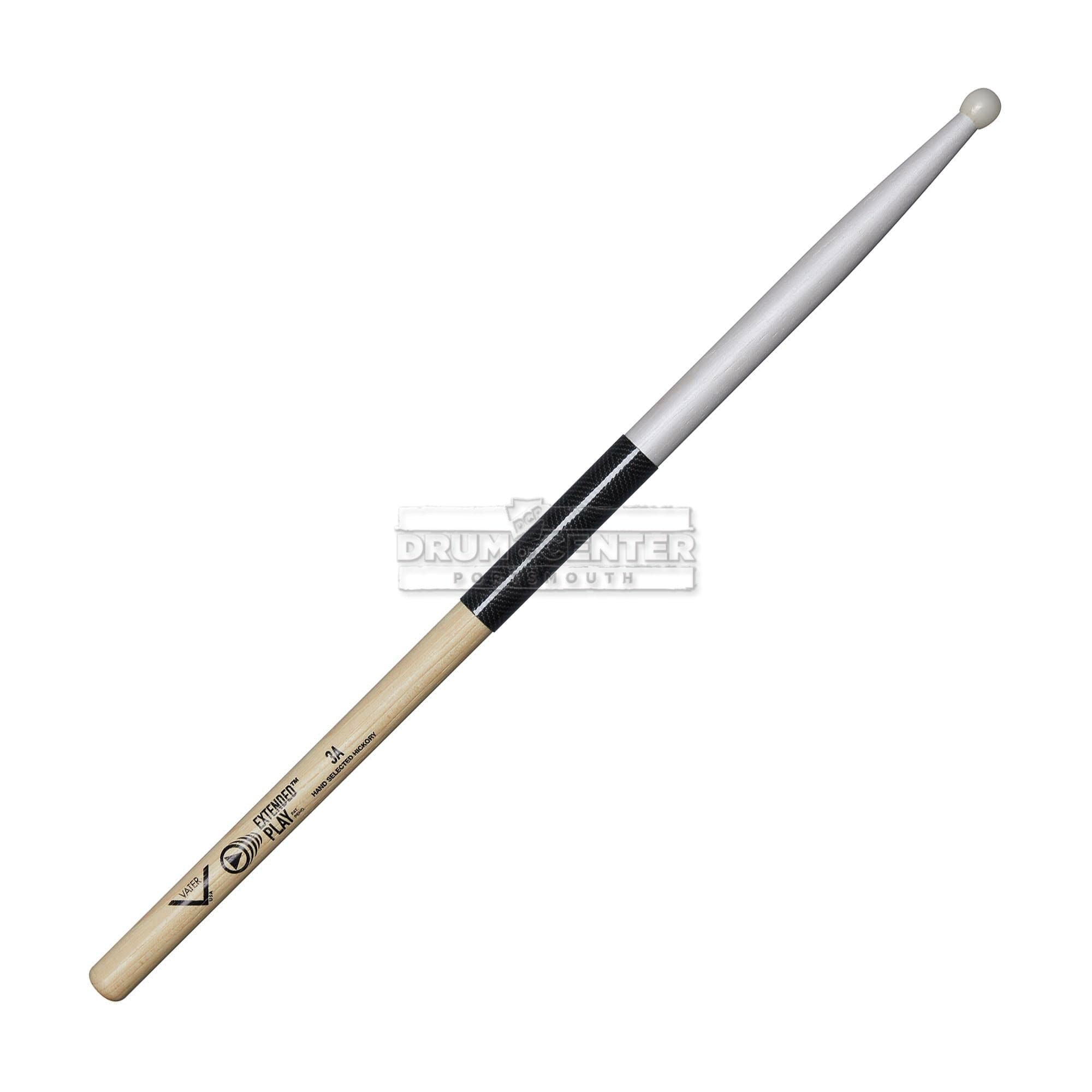 Vater Extended Play Series is an extremely durable drumstick that has two distinct features to help address issues of common wear and tear on a players’ drumsticks. The first feature is a pearl-colored, specially formulated durable finish that protects the tip and shoulder area of the stick from early chipping and cracking. The second feature is our exclusive 3 inch Stick Shield located in the rimshot area that is highly impact resistant and 8X stronger than Steel with maximum tensile strength. The grip area of the stick has the same great-feeling finish as found on all Vater Sticks. Extended Play sticks offer the optimal balance and feel of a Vater hickory stick, with advanced durability and resistance to rimshot fatigue and breakage.
