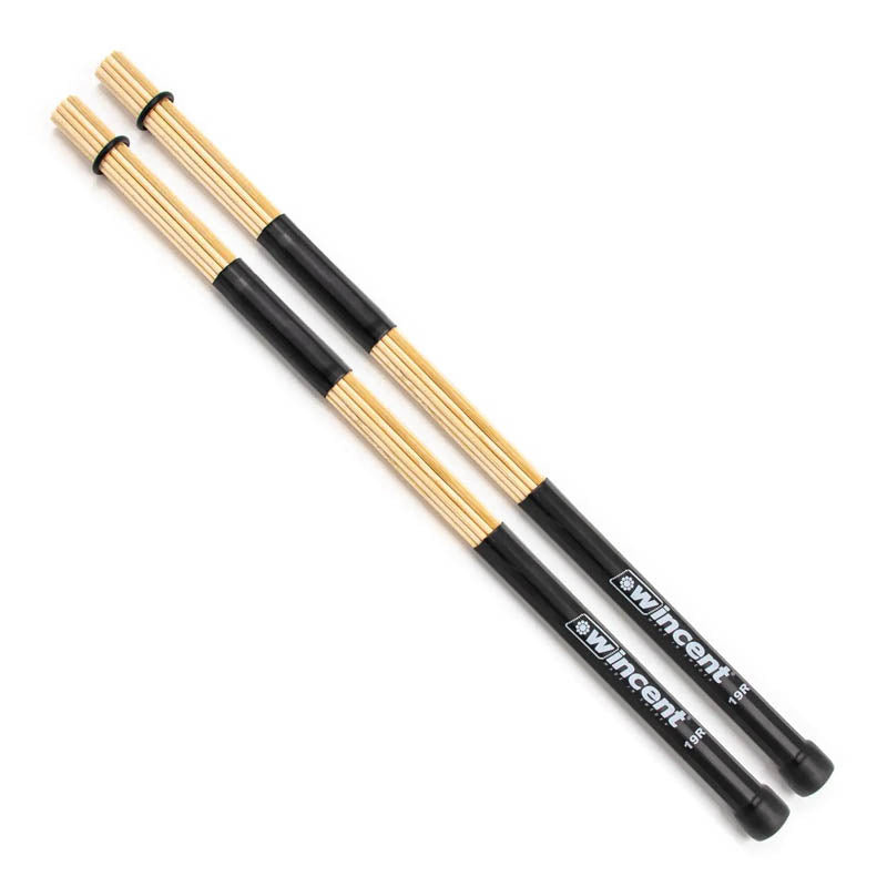 Wincent BundleRods fuse the accuracy of drumstick play with the low volume yield of brushes. The W19R model offers a twist on the standard wood dowel rod design by fusing individual Bamboo strands in a single stick with fixed rubber shoulder and grip bands. Their sturdy feel and controlled balance makes them a great alternative to high-volume sticks, and their yielding impact tone makes them excellent for mid-level volume play.